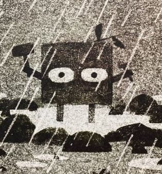 Avez-vous trouvé le vrai point commun à tous ces animaux, formes géométriques, flamme noire bizarroïde ? Indice : sont ces deux billes plus ou moins rondes qui m’ont appelée quand je suis un jour passée devant eux. Dans leurs yeux, tout se lit dès la couverture, pas besoin de feuilleter, on a juste envie de découvrir ce qui se cache derrière – même si en réalité ils disent tout dès le départ.