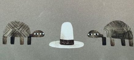 2 tortues, 1 chapeau, cherchez l’erreur. L’une d’elles le veut rien que pour elle, alors elle attend que son amie tortue s’endorme tout en le reluquant en douce… Mais quand se fait le silence, elle entend le rêve de l’autre tortue , et ce rêve, c’est que toutes les deux ont un chapeau sur la tête. Elle se détourne alors de l’objet convoité et ferme les yeux à son tour pour retrouver son amie dans la nuit où tout est permis. => Mieux vaut un rêve pour deux qu’un chapeau sur une seule tête.